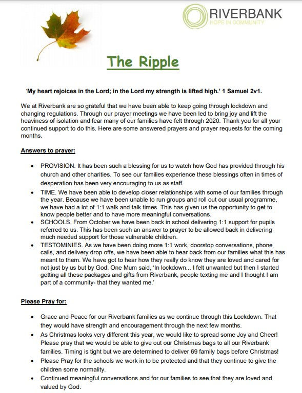 Prayer Letter from Riverbank TrustSt Luke's, KewNov 26, 20200 min readNovember 2020 Prayer Letter Riverbank Tr. Download • 161KB